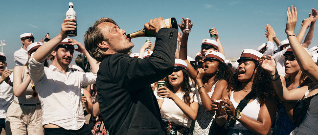 Directed by Thomas Vinterberg, Another Round follows four friends, including Mads Mikkelsen’s Martin and Magnus Millang’s Nikolaj, as they attempt to go about their daily lives while constantly drinking alcohol throughout the day. It’s an intriguing premise that’s employed to watchable yet entirely erratic effect by Vinterberg, as the filmmaker, working from a script written with Tobias Lindholm, delivers an overlong drama that’s undoubtedly at its best in its relatively compelling first half – with the agreeable atmosphere heightened by the uniformly strong efforts of a talented cast. (Mikkelsen’s typically commanding work remains an ongoing highlight here, to be sure.) There’s little doubt, then, that Another Round‘s meandering midsection, which is compounded by a narrative that’s often egregiously predictable and by the numbers, drains the viewer’s interest to a progressively distressing extent, and it’s difficult, certainly, to work up much enthusiasm (or sympathy) for a final third devoted almost entirely to the protagonists’ downward spiral – with the oddly (and somewhat incongruously) upbeat finale ensuring that the whole thing ultimately does end on a rather lackluster note.