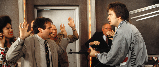 Directed by Roger Donaldson, Cadillac Man follows a womanizing car salesman (Robin Williams’ Joey O’Brien) as he attempts to fast-talk his way out of a hostage situation. Filmmaker Donaldson, armed with Ken Friedman’s script, delivers a briskly-paced comedy that benefits substantially from Williams’ compelling, entertaining work as the motor-mouthed protagonist, and there’s little doubt, certainly, that the picture, particularly in its opening stretch, gets plenty of mileage out of Joey’s amusing efforts at schmoozing his way through a series of precarious (and/or lucrative) scenarios – with Williams’ top-notch efforts matched by an eclectic assortment of periphery players (including Fran Drescher, Annabella Sciorra, and Lori Petty). It’s clear, too, that Cadillac Man‘s shift from the comedic to the (comedically) tense with its hostage-situation-focused second half is hardly as jarring as one might’ve anticipated, with the impact of this portion of the proceedings undoubtedly heightened by Tim Robbins’ terrific turn as the dimwitted, gun-toting jealous husband – which, when coupled with a satisfying climax, ultimately does confirm the movie’s place as an engaging (albeit awfully slight) endeavor that seems to have been undeservedly forgotten in the years since its 1990 release.