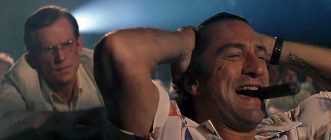 Directed by Martin Scorsese, Cape Fear follows Nick Nolte’s Sam Bowden as he and his family, Jessica Lange’s Leigh and Juliette Lewis’ Danielle, are stalked and harassed by an ex-convict (Robert De Niro’s Max Cady) bent on revenge. Filmmaker Scorsese, working from Wesley Strick’s screenplay, offers up an exceedingly pulpy and over-the-top thriller that’s been suffused with a whole host of appealingly less-than-subtle elements, including Freddie Francis’ striking visuals and Elmer Bernstein’s memorable, bombastic score, and it’s clear that the picture’s gleefully broad sensibilities are reflected most keenly, ultimately, in De Niro’s magnetic and thoroughly larger-than-life performance – as the actor delivers a frequently iconic turn that elevates the proceedings on an continuing basis. (There’s little doubt, as well, that Scorsese elicits top-tier work from his periphery cast, which includes captivating appearances by, among others, Robert Mitchum and Gregory Peck.) The picture’s overall success and impact is, however, hampered by a padded-out, palpably overlong running time of over two hours, as the movie, which should have topped out at 90 minutes, is consequently unable to sustain its tense, suspenseful vibe for more than a few minutes at a time (ie the whole thing just isn’t as taut as one might’ve anticipated). By the time the entertaining yet almost unreasonably ridiculous climax rolls around, Cape Fear has certainly cemented its place as a stylish and sporadically spellbinding adaptation that isn’t quite as consistently engrossing as it could’ve been.