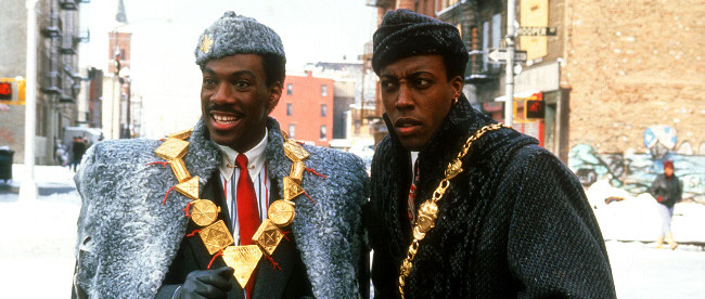 Coming to America follows Eddie Murphy’s Prince Akeem, the heir to the throne of a fictional African country, as he arrives in New York City hoping to find a wife, with complications ensuing as Akeem and faithful cohort Semmi (Arsenio Hall) are forced to take low-paying jobs at a fast-food restaurant. Filmmaker John Landis has infused Coming to America with a tremendously affable and consistently hilarious sensibility that proves impossible to resist, with the movie’s compulsively watchable atmosphere heightened by the efforts of an almost uniformly charismatic cast – with Murphy’s appealing turn as the film’s hero matched by a top-notch roster of periphery performers (including James Earl Jones, John Amos, and Eriq La Salle). It doesn’t hurt, either, that scripters David Sheffield and Barry W. Blaustein have packed the narrative with a number of laugh-out-loud funny gags and set pieces, with the movie’s heavy emphasis on Akeem and Semmi’s fish-out-of-water exploits certainly perpetuating the irresistibly comic vibe. There is, however, little doubt that Coming to America loses some momentum as it progresses into its flabby midsection, as Landis offers up a handful of padded-out subplots (eg Akeem’s crush on a beautiful coworker) and flat-out needless sequences (eg it’s difficult to justify or derive much entertainment out of Murphy’s turn as a terrible soul singer). The film does rebound for an effective and uplifting final stretch, however, which ultimately does confirm Coming to America‘s place as a better-than-average comedy and a worthy followup to Murphy and Landis’ first collaboration, Trading Places.