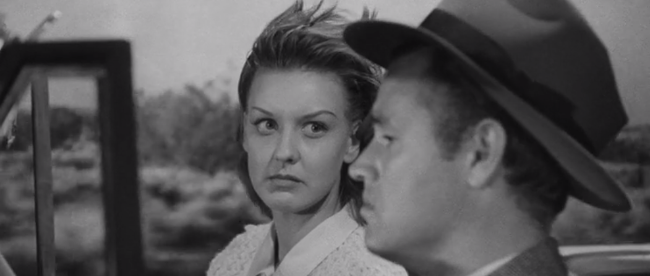 Directed by Edgar G. Ulmer, Detour follows Tom Neal’s Al Roberts as he stumbles into a whole mess of trouble after encountering a hitchhiker named Vera (Ann Savage). It’s a compelling setup that’s employed to watchable yet pervasively erratic effect by Ulmer, as the filmmaker, working from Martin Goldsmith’s screenplay, delivers a somewhat low-rent production that suffers from an overuse of voice-over narration – with the arms-length atmosphere, at least, alleviated by compelling performances and a smattering of compelling (and surprising) sequences and interludes. There is, in terms of the former, little doubt that Detour‘s most potent weapon is Savage, as the actress does a superb job of transforming her fairly underwritten figure into a fierce, almost iconic femme-fatale type – with the movie, as a result, generally at its best when focused on the back-and-forth banter between Al and Vera. By the time the predictably grim closing stretch rolls around, Detour has confirmed its place as a decent-enough film noir that’s rarely as compelling or captivating as its admittedly stellar performances.