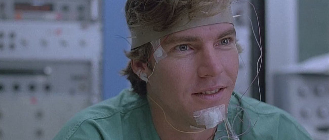 Dreamscape follows psychic Alex Gardner (Dennis Quaid) as he reluctantly agrees to participate in a program designed to help people suffering from nightmares, as the clairvoyants use their abilities to actually enter the subjects’ dreams and assist from within the subconscious – with problems ensuing after a shady government official (Christopher Plummer’s Bob Blair) decides to use the technology for nefarious purposes. It’s a decidedly out-there premise that is, at the outset, employed to distressingly uneven effect by Joseph Ruben, as the filmmaker, working from a screenplay written with David Loughery and Chuck Russell, delivers a watchable yet hopelessly erratic episodic first half revolving mostly around Alex’s dream-based exploits – with the hit-and-miss nature of these interludes certainly contributing heavily to the movie’s less-than-consistent atmosphere. (It seems apparent, ultimately, that one or two of Alex’s dream-infiltrating escapades could and should have been jettisoned.) There’s little doubt, then, that Dreamscape improves immeasurably once Quaid’s plucky character stumbles upon Blair’s villainous scheme, after which point the picture adopts a far more propulsive feel that’s heightened by an ongoing inclusion of compelling sequences – with the climactic stretch, detailing a dream-set battle between Alex and David Patrick Kelly’s evil psychic, certainly ensuring that the movie concludes on a fairly ludicrous yet undeniably entertaining note.