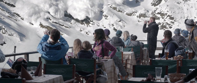 Force Majeure follows a family of four – dad Tomas (Johannes Kuhnke), mom Ebba (Lisa Loven Kongsli), and kids Vera (Clara Wettergren) and Harry (Vincent Wettergren) – as they arrive at the French Alps for a ski holiday, with problems ensuing after Tomas reacts in a less-than-heroic manner to what looks like a deadly avalanche. Filmmaker Ruben Östlund does a superb job of immediately luring the viewer into the deliberately-paced proceedings, as the writer/director has infused Force Majeure with a striking visual sensibility that proves hypnotic from the word go (ie Östlund’s penchant for long, unbroken takes is generally nothing short of electrifying). The film’s domestic-drama atmosphere initially holds a great deal of promise, too, as Östlund effectively establishes the four central characters and their relatively comfortable dynamic with one another. It’s clear, of course, that the movie’s trajectory changes dramatically in the wake of that aforementioned avalanche scare, with Östlund’s decision to force the characters to almost immediately confront the issue ensuring that Force Majeure retains a plausible vibe from beginning to end. (Contrast the characters’ openness with the curiously, bafflingly closed-off manner in which the protagonists deal with a similar situation in Julia Loktev’s The Loneliest Planet.) There’s little doubt, however, that the film begins to wear out its welcome as it passes its midway point, as Östlund suffuses the narrative with a whole host of palpably padded-out elements that diminish the film’s overall impact. (What are we to make, for example, of Tomas’ brief visit to a homosexual rave?) And although Östlund offers up a fairly affecting final stretch, Force Majeure‘s oddball, inexplicable finale ultimately confirms its place as a sporadically engrossing yet perpetually erratic familial drama.