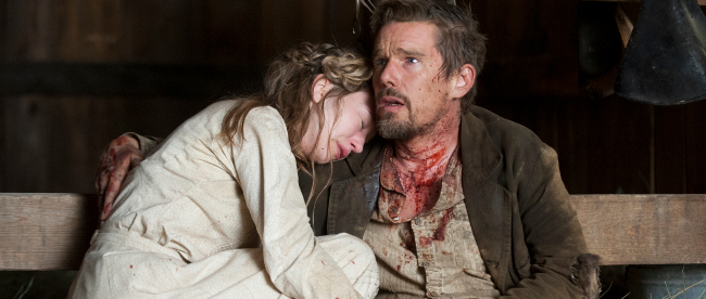 Written and directed by Ti West, In a Valley of Violence follows Ethan Hawke’s mysterious Paul as he and his dog arrive in a small Old West town and are eventually (and perhaps inevitably) drawn into a deadly cycle of violence with several citizens (including James Ransone’s Gilly and John Travolta’s Marshal). Filmmaker West does an effective job of initially establishing a loose and periodically tongue-in-cheek vibe designed to echo the Spaghetti Westerns of yesteryear, with the movie’s affable atmosphere heightened by Hawke’s typically engrossing turn as the movie’s personable protagonist (and it doesn’t hurt, either, that his character’s chemistry with his dog is palpable). And although the movie’s revenge-based narrative holds some promise at the outset, In a Valley of Violence grows less and less interesting (and more and more familiar) as time progresses – with the movie’s overly deliberate midsection essentially highlighting the less-than-fresh nature of West’s screenplay (ie this is, after all, essentially John Wick transposed to the Old West). The action-packed yet hopelessly uninvolving climax ultimately confirms In a Valley of Violence‘s place as a disappointingly half-baked misfire, which is a shame, certainly, given the serious potential afforded by both the setup and the stars’ efforts.