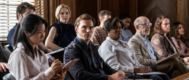 Directed by Clint Eastwood, Juror #2 follows Nicholas Hoult’s Justin Kemp as he makes a shocking discovery while serving as a juror on a high-profile murder trial. It’s clear, ultimately, that Juror #2 fares best in its surprising, briskly-paced opening stretch, as filmmaker Eastwood, armed with a screenplay by Jonathan Abrams, does a terrific job of initially establishing the central character and the admittedly engrossing scenario in which he finds himself – with the compulsively watchable atmosphere heightened by the peppering of familiar faces within the supporting cast. (J.K. Simmons, playing a fellow juror here, is an obvious standout among such scene-stealers as Toni Collette, Chris Messina, and Kiefer Sutherland.) There’s little doubt, then, that Juror #2‘s overall impact is hampered by Eastwood’s predictably lackadaisical approach to the material, as the picture is rarely, if ever, as tense or suspenseful as one might’ve anticipated based on the premise (ie this is the type of plot that’s virtually crying out for a more thriller-like sensibility) – with the sporadic arms-length feel perpetuated by Yves BĂ©langer’s distressingly bland visuals and a somewhat padded-out midsection. Still, Juror #2, which does boast a terrific final stretch, generally comes off as an entertaining-enough endeavor that stands in sharp contrast to most of the lowest-common-denominator junk flooding multiplexes (ie this is a refreshingly adult-oriented piece of work).