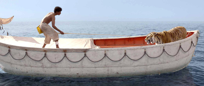 Based on Yann Martel’s best-selling novel, Life of Pi follows Suraj Sharma’s Pi Patel as he and his family embark on a journey to North America on an enormous cargo ship – with a catastrophic storm sinking said ship and leaving Pi to fight for his life aboard a small lifeboat alongside a vicious tiger. It’s clear immediately that scripter David Magee isn’t looking to stray too far from the source material, as Life of Pi, for better or worse, contains virtually all of the beats and plot developments held within Martel’s lackluster book. This proves to be especially problematic in the film’s opening half hour, which details Pi’s exploration of various religions, as it’s ultimately difficult to work up much interest in or enthusiasm for the protagonist’s spiritual journey. And although director Ang Lee does a superb job with the movie’s enthralling shipwreck sequence, Life of Pi progresses into a midsection that’s just about as stagnant and uneventful as one might’ve feared – with the ongoing undercurrent of animal unpleasantness only exacerbating the movie’s hands-off feel. The inclusion of a few admittedly engrossing interludes during this stretch – eg Pi goes to impressive lengths to save the tiger’s life, the lifeboat is overrun by flying fish, etc – staves off total boredom, though it remains clear that Lee is concerned more with pretty, slick visuals than with cultivating (and maintaining) a compelling narrative. It goes without saying, then, that the big revelation contained within the movie’s final few minutes falls disappointingly flat (ie it simply isn’t able to make the emotional impact Lee is going for), which ultimately confirms Life of Pi‘s place as an underwhelming adaptation of an underwhelming book.