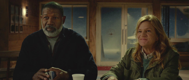 Directed by Damien Power, No Exit follows several characters, including Havana Rose Liu’s Darby Thorne, Danny Ramirez’s Ash, and Dennis Haysbert’s Ed, as they find themselves trapped within a snowed-in rest stop alongside one or more vicious criminals. It’s a familiar yet workable setup that is, at the outset, employed to distressingly underwhelming and uninvolving effect by Power, as the filmmaker, working from Andrew Barrer and Gabriel Ferrari’s screenplay, delivers a distractingly low-rent endeavor that unfolds on sets that look like sets and boasts visuals of a decidedly less-than-cinematic nature – which, when coupled with a fairly generic opening stretch, doesn’t exactly inspire much confidence or draw one into the proceedings. It’s clear, then, that No Exit improves considerably once it progresses into a surprising and impressively brutal midsection, as the picture, beyond a certain point, adopts a propulsive feel that goes a long way towards compensating for (and canceling out) its assortment of far-from-enthralling attributes – with the exciting, electrifying third act ultimately ensuring that the whole thing concludes on a relatively memorable note. The end result is a decent-enough thriller that generally does an effective job of exploiting its claustrophobic premise and atmosphere, although it remains obvious that the movie’s inconsistent execution prevents it from wholeheartedly becoming the small-scale sleeper Power has obviously intended.