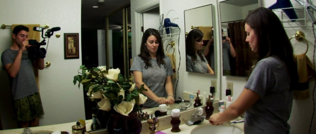 A found-footage thriller in the vein of The Blair Witch Project, Paranormal Activity follows engaged couple Katie (Katie Featherston) and Micah (Micah Sloat) as they become convinced that their home has been infested by a malicious presence – with the film subsequently detailing the pair’s ongoing efforts at documenting said presence by filming every aspect of their day-to-day lives. Though writer/director Oren Peli does a nice job of sustaining the authenticity of the characters and their situation through the movie’s progressively outlandish plot developments, the filmmaker’s inability to draw the viewer into the unabashedly spare storyline is exacerbated by an almost egregiously uneventful opening half hour – which consequently ensures that it becomes more and more difficult to work up any enthusiasm for the protagonists’ admittedly dire plight. It certainly doesn’t help that Katie and Micah are almost entirely lacking in attributes designed to earn the viewer’s sympathy (ie they’re both just bland), with the pervasive emphasis on the couple’s banal conversations effectively establishing a monotonous atmosphere that’s periodically (and thankfully) interrupted by the spirit’s spooky shenanigans. And while some of this stuff is undeniably quite creepy – ie Katie, seemingly possessed by the apparition, stands prone over Micah’s sleeping figure for several hours – there reaches a point at which the film’s relentlessly repetitive nature slowly-but-surely begins to dull the impact of its overtly scary moments. As a result, the impressively brutal (yet disappointingly conventional) climax isn’t nearly as stirring as one imagines it’s meant to be – which only cements Paranormal Activity‘s place as a sporadically intriguing horror effort that ultimately can’t quite live up to the promise of its setup.