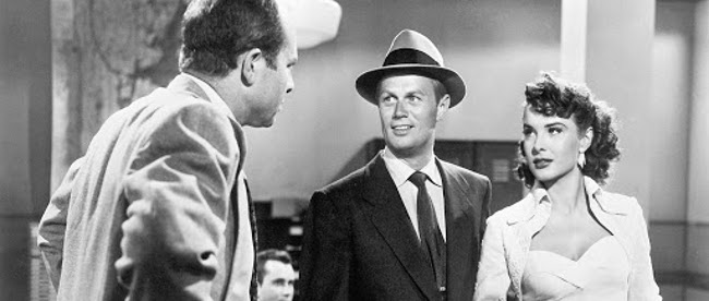 Directed by Samuel Fuller, Pickup On South Street follows slick pickpocket Skip McCoy (Richard Widmark) as he finds himself in a whole mess of trouble after he lifts the purse of a woman (Jean Peters’ Candy) working for a Russian spy. It’s a compelling premise that’s employed to watchable yet decidedly erratic effect by Fuller, as the filmmaker, working from his own screenplay, delivers a hit-and-miss narrative that benefits quite substantially from a smattering of engrossing sequences and the uniformly captivating performances – with, in terms of the latter, Widmark offering up a typically compelling and commanding turn that’s matched by a solid roster of periphery players. (Thelma Ritter is certainly a standout as a weary, pragmatic professional informant.) Fuller’s predictably tough-as-nails approach to the material goes a long way towards elevating the proceedings on a recurring basis, and it’s clear, too, that the engrossing climax ensures that the picture manages to end, despite an incongruously upbeat final shot, on a palpably positive note – which cements Pickup On South Street‘s place as an often irresistibly gritty bit of ’50s noir filmmaking.