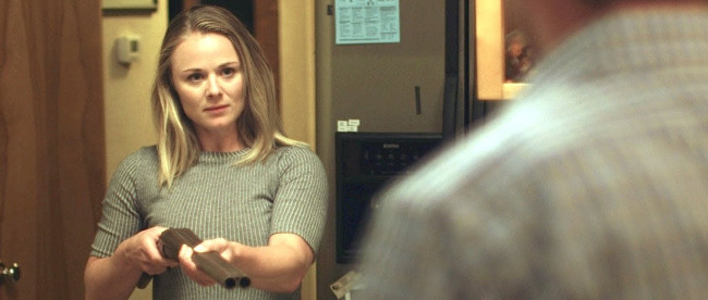 Poor Agnes casts Lora Burke as the title character, an arrogant serial killer whose murderous rampage is threatened by an inquisitive private detective (Robert Notman’s Mike) – with the narrative detailing the rather unusual relationship that eventually forms between the two disparate figures. There’s little doubt that Poor Agnes fares best in its slow-moving yet rather promising opening stretch, as filmmaker Navin Ramaswaran, working from James Gordon Ross’ screenplay, effectively establishes the initially-likable protagonist and her small-town environs – with the promising vibe heightened by the palpable tension inherent in Agnes and Mike’s first few scenes together. It’s only as the film proceeds into its progressively meandering midsection that one’s interest begins to wane, with the bulk of the second act revolving around the mind games and torture inflicted on Notman’s hapless (and not entirely sympathetic) protagonist (ie it’s just stale and repetitive stuff, ultimately). The movie’s less-than-compelling vibe is compounded by the admittedly unexpected turn in the central characters’ dynamic, as it becomes more and more difficult to comfortably swallow the weird Stockholm Syndrome-fueled bent of Agnes and Mike’s bond. It is, as such, not terribly surprising to note that Poor Agnes fizzles out long before arriving at its underwhelming conclusion, which is a shame, certainly, given that the movie does boast plenty of overtly positive attributes (eg Burke’s striking work as the psychotic main character).