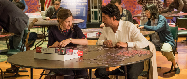 Based on the Argentinean film Rompecabezas, Puzzle follows meek housewife Agnes (Kelly Macdonald) as she discovers a passion for solving jigsaw puzzles and subsequently connects with an eccentric millionaire (Irrfan Khan’s Robert) – with the movie detailing Agnes and Robert’s efforts at preparing for a puzzle-solving competition. (There’s also an ongoing emphasis on the impact Agnes’ increasingly assertive attitude has on her husband and two teenage sons.) Filmmaker Marc Turtletaub has infused Puzzle with an exceedingly subdued feel that proves an effective complement to Polly Mann and Oren Moverman’s quiet and somewhat uneventful screenplay, with the movie, at the outset, benefiting substantially from Macdonald’s incredibly sympathetic and charming work as the mousy central character. It does become increasingly clear, however, that there’s perhaps just not enough material here to sustain a feature-length running time, as the story’s unapologetic slightness is pushed to its breaking point during a progressively erratic midsection – thus ensuring that Puzzle, as it moves forward, suffers from a decidedly hit-and-miss feel that’s generally more the latter than the former. The spinning-its-wheels effectively (and demonstrably) dulls the impact of the picture’s third-act revelations, which is too bad, certainly, given that there’s a palpable kernel of a good idea here (and Macdonald’s consistently captivating performance undoubtedly deserves better than this).