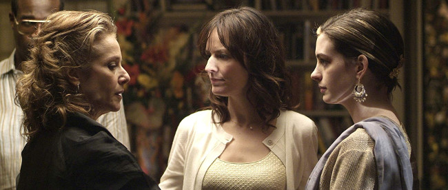 Infused with a pervadingly experimental vibe, Rachel Getting Married can’t help but come off as an alternatingly intriguing and maddening cinematic experience – as director Jonathan Demme’s unconscionably second-rate visuals often hinder one’s efforts at wholeheartedly embracing the movie’s well-defined characters. Anne Hathaway stars as Kym, a spunky troublemaker who arrives at her family’s country home for the wedding of her older sister (Rosemarie DeWitt’s Rachel) following a stint at rehab – with the bulk of the film subsequently revolving around the various matrimonial preparations and traditions that ensue. Demme’s efforts at replicating the look and tone of a fly-on-the-wall documentary immediately proves effective at alienating the viewer, as the filmmaker consistently stresses self-consciously low-rent elements that ultimately lend the proceedings the feel of a garden-variety home movie. The inclusion of several mind-numbingly tedious episodes perpetuates scripter Jenny Lumet’s arm’s-length modus operandi, with a sequence detailing the pre-wedding speeches from Rachel’s family and friends – occurring in what feels like real time – undoubtedly the most apt (and downright frustrating) example of this. There does reach a point, however, at which the characters – assisted by the uniformly superb performances – start to grow on the viewer, with the emphasis on increasingly compelling individual interludes (ie Kym delivers a tearful speech to her fellow addicts, two characters engage in a dishwasher-filling competition, etc) playing an instrumental role in the film’s eventual about face. Demme almost blows the relatively engrossing ambiance by spending far too much time on the post-nuptials celebration – ie Rachel Getting Married briefly threatens to morph into the Shortbus of wedding movies – yet it’s hard to deny the effectiveness of the film’s closing minutes. The final result is an endeavor that’s sporadically quite entertaining in spite of its shoddy production values and egregiously avant-garde sensibilities, and it’s certainly quite clear that the movie would’ve benefited substantially from a more mainstream approach.
