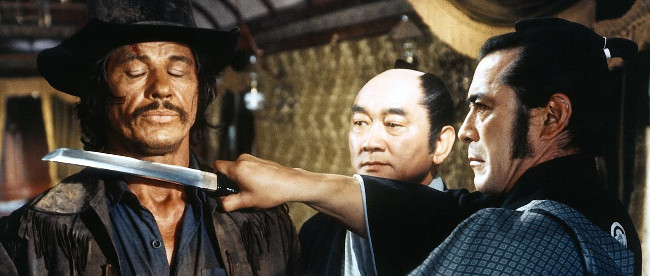 Directed by Terence Young, Red Sun follows a ruthless bandit (Charles Bronson’s Link Stuart) as he reluctantly teams up with a samurai warrior (Toshirō Mifune’s Kuroda Jubei) to track down the man (Alain Delon’s Gauche) responsible for stealing their valuable property. It’s a top-notch, thoroughly promising setup that’s employed to mostly underwhelming effect by Young, as the filmmaker, armed with Denne Bart Petitclerc, William Roberts, and Lawrence Roman’s screenplay, delivers a sluggish and hopelessly hit-and-miss endeavor that meanders its way through a plot riddled with questionable elements – with the picture’s tolerable atmosphere, then, due almost entirely to the personable, entertaining work of its three stars. (Mifune and Delon are superb here, of course, and yet there’s little doubt that Bronson’s loose, endlessly charming performance remains an obvious highlight.) Young’s thoroughly (and disappointingly) generic approach to the material ensures that Red Sun predominantly comes off as an almost paint-by-numbers buddy Western, although, by that same token, it’s worth noting that the movie does boast (and benefit from) a small handful of admittedly electrifying sequences and a marginally-improved second half – which ultimately does cement the whole thing’s place as a watchable (but consistently erratic) effort that generally feels like it should be much, much better.
