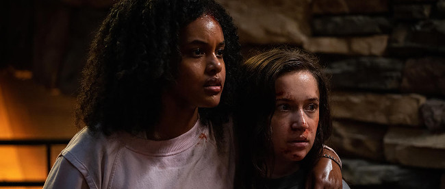 Directed by John Hyams, Sick follows two friends (Gideon Adlon’s Parker and Bethlehem Million’s Miri) as they arrive at a remote cabin to quarantine during the COVID pandemic – with trouble (and violence) ensuing after it becomes clear that they’re not alone out there. It’s pretty standard slasher-movie territory that’s employed to compelling and frequently enthralling effect by Hyams, as the filmmaker, armed with a script by Kevin Williamson and Katelyn Crabb, delivers a briskly-paced, perpetually surprising endeavor that grabs the viewer’s interest and attention right from the get-go – with the fun, exciting opening certainly living up to one’s expectations given Williamson’s involvement (ie this is almost as effective as Scream‘s pre-credits sequence, to be sure). From there, Sick progresses into an admittedly familiar midsection that’s augmented (and elevated) by the charismatic performances and smattering of impressively captivating interludes and set-pieces – with, in terms of the latter, Hyams’ brutal, visceral approach enhancing the impact of the film’s high-octane moments. By the time the revelation-heavy and thoroughly surprising third act rolls around, Sick has cemented its place as one of the most compelling and flat-out entertaining slasher pictures to emerge in a very, very long time – to the extent that it ultimately deserves a place alongside the genre’s most lauded entries (including, of course, Scream).