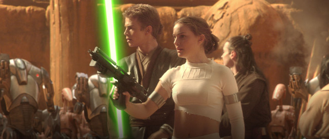 As perpetually uneven as its underwhelming predecessor, Star Wars: Episode II – Attack of the Clones follows a now-adult Anakin Skywalker (Hayden Christensen) as he embarks on an illicit affair with Natalie Portman’s Padmé – with the narrative also detailing Obi-Wan Kenobi’s (Ewan McGregor) investigation into a failed assassination attempt on Senator Palpatine (Ian McDiarmid). It becomes clear fairly early on that writer/director George Lucas intends for Star Wars: Episode II – Attack of the Clones to correct the mistakes of Episode I, as the movie, for the most part, boasts a more adult-oriented sensibility that proves a refreshing change from the almost non-stop silliness of the earlier film – with the most obvious example of this a severely (and appreciatively) reduced role for Ahmed Best’s pointless, annoying Jar Jar Binks. There’s little doubt, however, that the heavy emphasis on the burgeoning relationship between Anakin and Padmé hardly fares well at all, with Christensen and Portman’s total lack of chemistry together merely the tip of the iceberg in terms of this subplot’s ineffectiveness. (It doesn’t help, of course, that Lucas floods the proceedings with ill-advised instances of dialogue, including Anakin’s infamous “I don’t like sand” line.) The less-than-enthralling narrative is compounded by Lucas’ overuse of computer-generated effects, as there’s a pervasive lack of reality to many of the movie’s action-oriented moments – with, for example, a flying car chase through a busy cityscape more cartoonish than anything else. It’s ultimately the ongoing emphasis on Star Wars-specific elements that sustains one’s interest through the far-too-long running time, with the inherently-compelling nature of many attributes ensuring that Star Wars: Episode II – Attack of the Clones is, at the very least, a watchable big-budget extravaganza. (It’d be nice for a little more substance, of course.)
