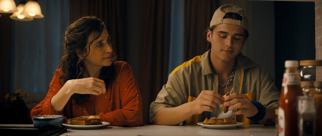 Directed by Dane Clark and Linsey Stewart, Suze follows Michaela Watkins’ middle-aged title character as she reluctantly agrees to watch over her bratty daughter’s (Sara Waisglass’ Brooke) dimwitted yet affable ex-boyfriend (Charlie Gillespie’s Gage) after a suicide attempt. Filmmakers Clark and Stewart, armed with their own screenplay, deliver a low-key character study that generally fares a whole lot better than one might’ve anticipated, and there’s little doubt that the picture’s perpetually (and pervasively) agreeable atmosphere is perpetuated by its stellar performances – with the first-class efforts of stars Watkins and Gillespie heightened by the pair’s undeniable (and increasingly irresistible) chemistry together. It’s clear, as well, that Suze‘s progressively engrossing atmosphere is due in no small part to its ongoing emphasis on compelling, relatable attributes and elements (eg the protagonist’s eventual attempts at reinventing herself are undeniably quite engaging), which, when coupled with a seriously satisfying closing stretch, ultimately does confirm the picture’s place as an above-average endeavor that successfully straddles the line between comedy and drama throughout.