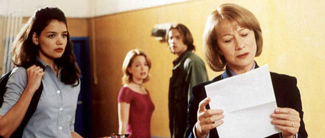Kevin Williamson’s directorial debut, Teaching Mrs. Tingle follows three high schoolers (Katie Holmes’ Leigh Ann, Marisa Coughlan’s Jo Lynn, and Barry Watson’s Luke) as they hold their vindictive history teacher (Helen Mirren’s Eve Tingle) hostage after she catches them with a pilfered copy of an upcoming test. It’s a reasonable premise that’s employed to persistently (and aggressively) underwhelming effect by Williamson, as the first-time filmmaker delivers an often painfully larger-than-life thriller that contains little in the way of compelling, believable characters or scenarios – with, especially, the one-dimensional portrayal of Mirren’s over-the-top title character ranking high on the picture’s list of inept elements. (She is, for the most part, too evil and menacing.) There’s subsequently never a point at which Williamson is able to cultivate an ounce of tension or suspense, and although the writer/director has infused the proceedings with a small handful of relatively compelling sequences (eg Mrs. Tingle lays out the uncomfortable truth to Leigh Ann regarding her life and ambitions), Teaching Mrs. Tingle, which builds towards an almost laughably abrupt climax, ultimately comes off as a complete misfire that’s devoid of the smart writing that defined Williamson’s earlier work.