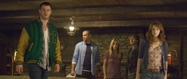Written by Joss Whedon and Drew Goddard, The Cabin in the Woods follows five friends (Chris Hemsworth’s Curt, Fran Kranz’s Marty, Kristen Connolly’s Dana, Anna Hutchison’s Jules, and Brian White’s Alex) as they embark on a weekend of fun and debauchery in and around the titular locale – with the movie also detailing the initially head-scratching exploits of two office workers (Richard Jenkins’ Richard and Bradley Whitford’s Steve) with a palpable connection to the aforementioned cabin. Filmmaker Goddard has infused the early part of The Cabin in the Woods with a pervasively familiar atmosphere that is, to put it mildly, somewhat off-putting, as the five-friends-head-into-the-woods narrative, which has been suffused with elements of a decidedly conventional nature (eg the creepy old guy who warns them of danger ahead), grows more and more tedious as time progress – with the charisma of the performances and the periodic peeks into Jenkins and Whitford’s curious activities proving instrumental in sustaining the viewer’s interest during this stretch. And though the film almost reaches a point at which it completely morphs into an egregiously routine disappointment, Whedon and Goddard cement The Cabin in the Woods‘ palpable success by offering up a final half hour that’s nothing short of astounding in its audaciousness (ie there are images and elements contained within this portion that will leave hardcore horror junkies absolutely and utterly satiated). The end result is an admittedly uneven piece of work that does seem as though it’d benefit from repeat viewings, as it seems entirely likely that the underwhelming first half, which is ultimately justified by the twists contained within the balls-to-the-wall third act, would fare a whole lot better the second time around.