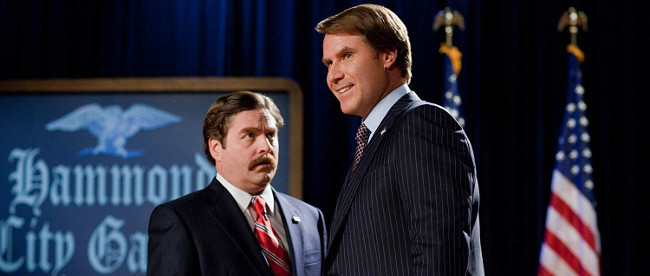 The Campaign follows Will Ferrell’s Cam Brady, a slick Congressman seeking his fifth term, as he finally faces some real competition in the form of Zach Galifianakis’ sweet and naive Marty Huggins, with the movie, for the most part, detailing the increasingly contentious battle that ensues between the disparate characters. It’s a seemingly can’t-miss premise that is, at the outset, employed to entertaining effect by director Jay Roach, as the filmmaker, working from a screenplay by Chris Henchy and Shawn Harwell, has infused the proceedings with a pervasively agreeable feel that’s heightened by the charismatic performances and sporadic inclusion of hilarious bits of comedy. (In terms of the latter, there is, for example, a laugh-out-loud funny scene wherein Marty’s family, by his own request, divulges their biggest secrets to progressively horrifying effect.) The slapdash narrative is, as a result, initially not quite as problematic as one might’ve feared, yet it’s hard to deny that the film does, after a certain point, begin to to demonstrably go off the rails – with the increased emphasis on unfunny and hopelessly misguided sequences triggering the movie’s palpable downfall (eg a terminally stupid interlude in which Cam comes under attack for creating a socialist paradise called Rainbowland as a small child). Henchy and Harwell’s subsequent reliance on unreasonably over-the-top elements cements The Campaign‘s place as a hit-and-miss comedy that’s ultimately more miss than hit, and the viewer can’t help but walk away from the movie feeling as though the filmmakers have squandered a setup with limitless potential.