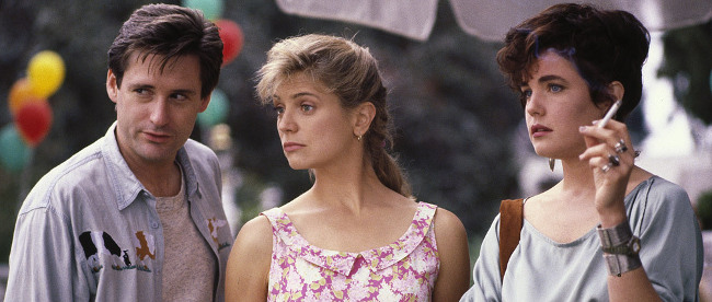 An affable, agreeable romantic comedy, The Favor follows Harley Jane Kozak’s Kathy as her ongoing fantasies about her high-school boyfriend (Ken Wahl’s Tom) eventually lead to a whole series of complications. (Elizabeth McGovern costars as Kathy’s best friend, Emily, while Bill Pullman and Brad Pitt play Kathy and Emily’s husband and boyfriend, respectively.) It’s a decent-enough premise that’s employed to forgettable yet undeniably watchable effect by Donald Petrie, as the filmmaker, armed with Sara Parriott and Josann McGibbon’s screenplay, delivers a perpetually entertaining romcom that benefits from the charismatic efforts of its stars – with, in particular, Pullman and Pitt turning in appealing work that elevates the proceedings on an ongoing basis. And while the picture does suffer from a few missteps here and there, particularly the recurring emphasis on Kathy’s daydreams (ie they become awfully tiresome after a while), The Favor‘s pervasively pleasant atmosphere goes a long way towards compensating for such problems and it is, in the end, difficult to entirely resist the picture’s easy-going, likeable sensibilities.