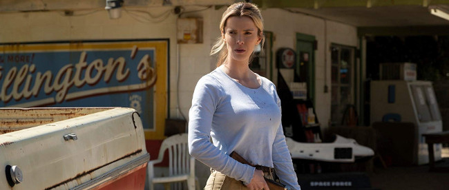 Written by Nick Cuse and Damon Lindelof, The Hunt follows 12 strangers as they find themselves forced to fend for their lives after they’re abducted and pursued by gun-toting assailants – with the bulk of the narrative detailing Crystal Creasey’s (Betty Gilpin) ongoing efforts at escaping her perilous predicament. Filmmaker Craig Zobel delivers an exceedingly erratic piece of work that fares best in its briskly-paced and appreciatively violent first half, and it’s clear, certainly, that the entertaining atmosphere is heightened by familiar faces in small roles as early victims (including Emma Roberts, Ike Barinholtz, and Justin Hartley). It doesn’t hurt, either, that Gilpin turns in an impressively commanding turn as the mysterious Crystal, with the character slowly-but-surely morphing into a seriously compelling figure that ultimately does deserve a better movie. The Hunt’s passable vibe persists right up until it progresses into its uneven and aggressively less-than-subtle third act, as scripters Cuse and Lindelof push their message/agenda to an extent that eventually becomes intolerable (and it doesn’t help, certainly, that the final fight is nothing short of anticlimactic in its execution). The end result is what feels like a 40 minute Twilight Zone episode awkwardly stretched out to feature length, which is a shame, undoubtedly, given that Zobel has managed to pack the proceedings with a handful of compelling attributes.