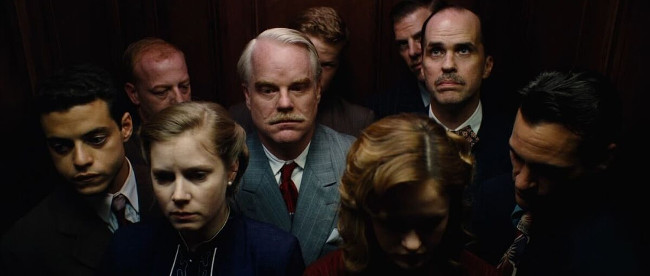 An incongruously underwhelming effort from Paul Thomas Anderson, The Master follows World War II veteran Freddie Quell (Joaquin Phoenix) as he flounders in a series of jobs before encountering an enigmatic, mysterious figure named Lancaster Dodd (Philip Seymour Hoffman) – with the film subsequently detailing the bond that ensues between the two men as well as Dodd’s ongoing efforts at creating a faith-based organization known as The Cause. There’s little doubt that The Master fares best in its opening half hour, as writer/director Anderson, having brilliantly established the movie’s post-WWII landscape, does an expectedly superb job of transforming Phoenix’s damaged Freddie Quell into a seriously compelling figure – with the episodic, character-study vibe that ensues, as a result, as gripping and mesmerizing as one might’ve hoped. It’s only as Freddie slowly-but-surely is drawn into Dodd’s secretive, insular world that The Master begins to lose its grip on the viewer, with the increasingly aimless midsection wreaking havoc on the movie’s momentum and ensuring that it becomes more and more difficult to work up any real interest in either of the central characters’ exploits. The sporadic inclusion of engrossing sequences (eg Dodd “processes” Freddie), combined with Mihai Malaimare Jr’s striking cinematography and the uniformly stirring performances, ensures that total boredom never quite sets in, admittedly, yet the viewer ultimately can’t help but walk away from the movie without wondering just what the point of all this is – which finally does confirm The Master‘s place as the sort of film that one admires more than one enjoys (and that’s the last thing one would’ve expected from such a dynamic and visionary director).