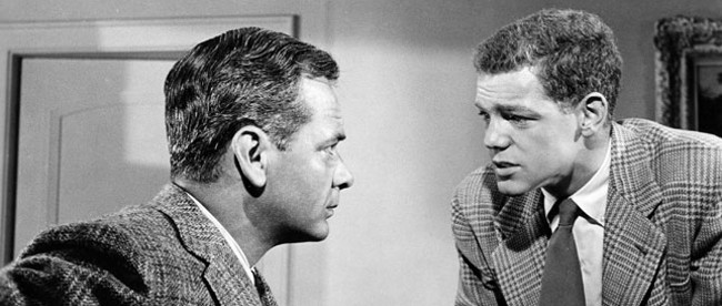 John Frankenheimer’s debut, The Young Stranger follows 16-year-old Hal Ditmar (James MacArthur) as he gets into trouble at a local movie theater and subsequently attempts to convince his father (James Daly’s Tom) that the altercation wasn’t his fault. Filmmaker Frankenheimer, working from Robert Dozier’s screenplay, delivers an erratically-paced yet rewarding drama that admittedly does tread exceedingly familiar territory, as the picture, which runs an appreciatively brisk 84 minutes, generally unfolds exactly as one might’ve anticipated based on the setup – with the better-than-average atmosphere due almost entirely to the strong performances and Frankenheimer’s solid handling of certain sequences. (There is, for example, a fairly electrifying interlude wherein Tom is confronted by the police officer that arrested his son.) It’s clear, however, that The Young Stranger‘s somewhat static midsection ultimately wreaks havoc on its already-tenuous momentum, and although scripter Dozier does a nice job of ensuring the story never becomes egregiously one-sided (ie it’s easy enough to sympathize with the point of view of the various adults), the movie builds towards a climax that isn’t quite able to pack the emotional punch that Frankenheimer has obviously intended – which finally cements the film’s place as a decent-enough first effort from a filmmaker who would go onto bigger and better things.
