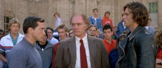 Directed by Phil Joanou, Three O’Clock High follows high schooler Jerry Mitchell (Casey Siemaszko) as he runs afoul of a tough new student (Richard Tyson’s Buddy Revell) and subsequently spends the rest of the day preparing for their after-school fight. Filmmaker Joanou, armed with Richard Christian Matheson and Thomas Szollosi’s screenplay, delivers a stylish, briskly-paced comedy that benefits from its appealing premise and raft of above-average performances, as, in terms of the latter, Siemaszko offers up an entertaining (and sympathetic) lead performance that’s matched by such eclectic periphery players as Anne Ryan, Philip Baker Hall, Mitch Pileggi, and Jeffrey Tambor. And while the picture admittedly does suffer from a small handful of lulls, including a visit with John P. Ryan’s principal that seems to go on just a little too long, Three O’Clock High builds towards a stirring and impressively enthralling climax that packs a far more viscerally-exciting punch than one might’ve anticipated – with the thoroughly satisfying bent of this stretch ensuring that the picture ends on a seriously positive note and, ultimately, confirming its place as a top-tier ’80s teen movie.
