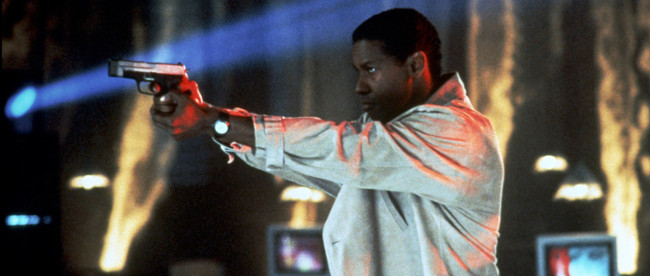 Directed by Brett Leonard, Virtuosity details the chaos and violence that ensues after Russell Crowe’s malevolent AI SID 6.7 finds its way into the real world – with the movie following disgraced police officer Parker Barnes (Denzel Washington) as he leads the charge to find and arrest SID 6.7. It’s a high-concept premise that’s employed to mostly watchable yet thoroughly erratic effect by Leonard, as the filmmaker, armed with Eric Bernt’s screenplay, delivers a decent-enough thriller that ultimately fares best in its briskly-paced (and periodically exciting) first half – with the picture’s engaging atmosphere perpetuated by a smattering of compelling sequences and the top-notch work of its two stars. (Washington offers up a predictably sold turn here, and yet it’s Crowe’s scenery-chewing and completely captivating performance that remains an ongoing highlight within the proceedings.) There’s little doubt, then, that Virtuosity‘s hold on the viewer’s interest and attention begins to waver once it progresses into an increasingly hit-and-miss midsection, and although it does contain its fair share of impressively prescient elements, the film builds towards an underwhelming special-effects heavy climax that’s hardly as thrilling or engrossing as Leonard has surely intended – which does, in the final analysis, cement the movie’s place as a passable endeavor that could (and should) be so much better.