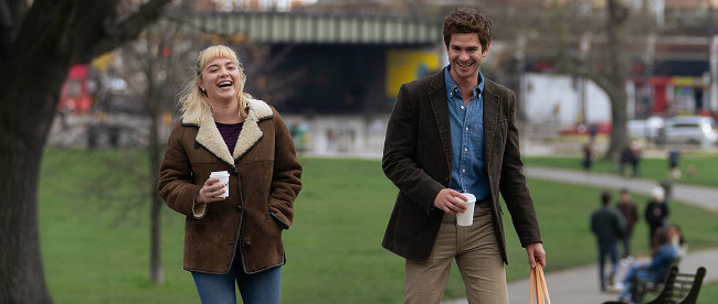 Directed by John Crowley, We Live in Time follows a young couple (Andrew Garfield’s Tobias and Florence Pugh’s Almut) as their relationship is tested by a series of obstacles (including a life-altering medical diagnosis). Filmmaker Crowley, armed with a script by Nick Payne, delivers a fairly conventional endeavor that grows more and more compelling as it unfolds, and it’s clear, certainly, that the movie’s initial success is due mostly to its intriguing time-shifting narrative and two absolutely enthralling central performances – with, in terms of the latter, Garfield and Pugh offering up charismatic, riveting work that elevates the proceedings on a recurring basis. (And it doesn’t hurt, of course, that the chemistry between their respective characters is off the charts.) There’s little doubt, then, that We Live in Time benefits from an increased emphasis on stirring, mesmerizing interludes and set-pieces, including a terrific mid-movie montage detailing Tobias and Almut’s efforts at getting pregnant and a thoroughly spellbinding argument between the two, which does ensure that the picture’s second half is far more engrossing and emotionally-draining than one might’ve initially anticipated. By the time the moving final stretch rolls around, We Live in Time has confirmed its place as a familiar yet thoroughly rewarding melodrama that contains, at its core, top-flight performances. (And this is to say nothing of one of the more memorable childbirth sequences in recent history.)