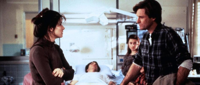 Directed by Jon Turteltaub, While You Were Sleeping follows mousy transit employee Lucy Moderatz (Sandra Bullock) as she saves the life of a handsome crush (Peter Gallagher’s Peter) and subsequently finds herself mistaken for the man’s heretofore unknown fiancĂ©e – with the arrival of Peter’s skeptical brother (Bill Pullman’s Jack) eventually forcing Lucy to choose between the two men. It’s a fairly ludicrous premise that’s employed as a springboard for an increasingly compelling and charming romantic comedy, as filmmaker Turteltaub, armed with Daniel G. Sullivan and Fredric Lebow’s screenplay, delivers an agreeable piece of work that benefits substantially from the almost unreasonably personable efforts of its various performers – with Bullock’s completely winning turn as the affable protagonist matched by an impressive roster of such scene-stealing periphery players as Peter Boyle, Glynis Johns, and Jack Warden. (And it doesn’t hurt, either, that Bullock and Pullman’s chemistry together is nothing short of electric, generally speaking.) There’s little doubt, as well, that While You Were Sleeping‘s above-average atmosphere is perpetuated by its raft of better-than-expect attributes and elements, including Phedon Papamichael’s unusually cinematic visuals and an undercurrent of laugh-out-loud funny bits and gags, and it’s clear, too, that the movie’s satisfying third act doesn’t, for the most part, fall prey to the various genre conventions one might’ve anticipated (and dreaded) – which ultimately does cement the picture’s place as one of the very best romcoms to emerge from the 1990s.
