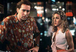 An engaging (if overlong) romantic comedy, Honeymoon in Vegas follows Nicolas Cage's Jack Singer as he finally works up the nerve to propose to his longtime girlfriend, Betsy (Sarah Jessica Parker) - with the couple's decision to elope in Las Vegas paving the way for a smooth gambler (James Caan's Tommy Korman) to swoop in for the kill. It's clear right from the get-go that Honeymoon in Vegas benefits substantially from Cage's idiosyncratic and entirely irresistible turn as the amiable central character, and it's apparent, too, that the palpable chemistry between Cage and Parker goes a long way towards initially capturing the viewer's interest and sympathy. Filmmaker Andrew Bergman appropriately keeps the tone light and the pace brisk - the colorful atmosphere is perpetuated by an ongoing emphasis on gaudy Vegas-specific elements (including an Elvis-heavy soundtrack) - so it's somewhat disappointing to note that Honeymoon in Vegas suffers from a meandering and comparatively underwhelming midsection. It's fairly apparent that there's simply not enough story here to sustain a 96 minute movie, which paves the way for a second act that's rife with padded-out, needless sequences (eg Jack's visit with a quirky Hawaiian village leader, played by Peter Boyle). The film does recover for a satisfying (and fairly exciting) climactic stretch, however, with the end result a perfectly affable endeavor that's ultimately as forgettable as it is entertaining.