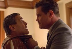 Hail, Caesar! follows Josh Brolin's Eddie Mannix, a 1950s Hollywood fixer, as he attempts to juggle a variety of problems and mishaps among his various stars, with the movie tracking the movements of, for example, a kidnapped performer (George Clooney's Baird Whitlock), an exasperated filmmaker (Ralph Fiennes' Laurence Laurentz), and an unwed, pregnant starlet (Scarlett Johansson's DeeAnna Moran). Directors Joel and Ethan Coen have infused Hail, Caesar! with a thoroughly idiosyncratic, far-from-crowd-pleasing sensibility that fares rather well at the outset, as the Coens emphasize a series of vignettes revolving around several old-school Hollywood productions (eg a splashy Busby Berkeley-style musical, a melodramatic weeper, a Roy Rogers-like Western, etc, etc). These sequences are undeniably quite enjoyable and contribute heavily to the movie's initial atmosphere of good-natured fun, and yet it's clear even during this portion of the proceedings that the Coens' inability to offer up a single well-defined protagonist is, to put it mildly, problematic (ie despite Brolin's solid work, Mannix remains a wholly one-dimensional figure from beginning to end). It's only as Hail, Caesar! enters its momentum-free midsection that one's interest begins to seriously flag, with the sketch-comedy vibe paving the way for a progressively erratic second half that boasts few wholeheartedly compelling attributes (ie there is, to an increasingly palpable extent, nothing here designed to hold the viewer's attention) - which ensures that the movie fizzles out considerably before reaching its anticlimactic finish (thus confirming its place as just another promising yet underwhelming effort from the Coen siblings).