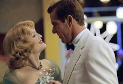Still, it's hard not to appreciate on some level what Haynes has done. Far From Heaven, if nothing else, is always fascinating just to look at. From the tacky parlor room in Frank and Cathy's house to the absurdly over-the-top fashions sported by the various characters, this is clearly a movie that's done its homework. And in that sense, Far From Heaven clearly evokes a very specific period in American history. Haynes is obviously trying to show that this idealized decade was rife with intolerance and bigotry, but he never really takes the material much further than that.