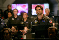 Dean Devlin's directorial debut, Geostorm details the chaos and destruction that ensues after an Earth-covering network of satellites, designed to protect the planet from harsh climate changes, goes haywire and begins targeting individual cities - with the narrative following maverick scientist Jake Lawson (Gerard Butler) as he agrees to head up into the complicated space station to attempt to fix the problem before it's too late. It's a decidedly familiar premise that could (and should) have resulted in a fun and unapologetically silly disaster movie, and while Devlin has peppered the narrative with a few admittedly engrossing sequences (eg a character must outrun a series of deadly explosions in a smart car), Geostorm is ultimately bogged down by a meandering midsection that's devoted almost entirely to Jake's dull exploits aboard the aforementioned space station - with the less-than-compelling nature of such scenes compounded by an emphasis on tedious character stuff (eg the strained relationship between Jake and his younger brother). There's virtually nothing within the non-spectacle-oriented moments that wholeheartedly works (a conspiracy involving no less than the President fares just as poorly as everything else, for example) and it's clear, too, that the action-packed climax isn't able to pack the visceral punch that Devlin has obviously intended (ie it just feels like run-of-the-mill computer-generated mayhem) - with the end result a misfire that's a far cry from the best the genre has to offer.
