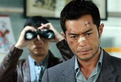 Set entirely over the course of one night, PTU follows a bumbling cop as he attempts to retrieve the gun he lost after slipping on a banana peel. Said cop, named Sgt. Lo (Suet Lam), enlists the help of the head of the Police Tactical Unit, Sgt. Mike Ho (Simon Yam), in recovering the weapon. Meanwhile, two rival gangs are preparing for a bloody confrontation - spurred on by the murder of Ponytail, the son of a high-ranking criminal. PTU opens with a fantastic scene set inside a restaurant, where three characters - Ponytail, Sgt. Lo, and Ponytail's assassin - compete over seating arrangements in a game of one-upmanship that continues to escalate until Ponytail receives a knife to the back. To does a fantastic job of filming this sequence, effectively using the widescreen frame to keep all three characters in view - while offsetting the tension with palpable moments of comedy. Unfortunately, though, the film goes quickly downhill from there. The entire midsection of PTU is almost exclusively devoted to Sgt. Lo's search for his missing gun, with Sgt. Ho's similar efforts also documented. Like another recent film about a cop that loses a firearm, the appropriately titled The Missing Gun, the concept alone isn't enough to keep things interesting throughout. To's stylish direction prevents the movie from becoming an all-out bore, and the fact that the film takes place entirely at night is certainly an intriguing narrative choice. Yet all the moody cinematography in the world can't disguise the inherently dull screenplay, which is inordinately preoccupied with having its characters walk (a lot). Not since Gerry has there been a film with so much walking, and though Gerry didn't have a shred of plot going for it, it was ultimately a much more entertaining and rewarding experience. The movie picks up right towards the end with a fantastic shoot-out done entirely in slow motion that's undeniably impressive, but not enough to make the viewer forget everything that came before it.