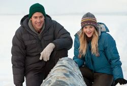 Inspired by true events, Big Miracle details the media circus that ensues after a small-time reporter (John Krasinski's Adam Carlson) breaks the story of three whales trapped in the ice within the Arctic Circle - with the ensuing efforts to break the animals free eventually involving everyone from a local environmentalist (Drew Barrymore's Rachel Kramer) to a pair of struggling entrepreneurs (James LeGros' Karl and Rob Riggle's Dean) to the President of the United States. It's clear right from the outset that Big Miracle has no greater goal than to come off as an unabashed (and distinctly old-fashioned) feel-good drama, as filmmaker Ken Kwapis, working from a script by Jack Amiel and Michael Begler, has infused the movie with a briskly-paced, pervasively likeable feel that generally does prove impossible to resist. The inherently compelling premise is, in the film's early stages, heightened by the efforts of an impressively diverse roster of performers, with, in particular, Krasinski's expectedly personable turn standing as a palpable highlight within the proceedings - although, having said that, it's certainly difficult not to get a kick out of LeGros and Riggle's lighthearted work as the project's possible saviors. It's not until Big Miracle rolls into its comparatively underwhelming midsection that the movie begins to lose its hold on the viewer, as Amiel and Begler, perhaps in an effort to pad out the running time, place an ongoing emphasis on elements of a distinctly needless variety (eg a rather pointless love triangle between Krasinski's Adam, Barrymore's Rachel, and Kristen Bell's Jill) - with the spinning-its-wheels vibe persisting right up until the film's appreciatively engrossing (and suspenseful) final stretch. The periodic inclusion of stand-out sequences - eg a generator must be transported to the site by helicopter without being switched off - ensures that the film retains its watchable feel even through its more aggressively superfluous portions, with the end result a perfectly competent crowd-pleaser that gets the job done in as inoffensive and blandly passable a manner as one could have envisioned.