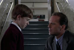 Written and directed by M. Night Shyamalan, The Sixth Sense follows child psychiatrist Malcolm Crowe (Bruce Willis) as he attempts to help a young boy (Haley Joel Osment's Cole Sear) break out of his shell - with complications ensuing as it becomes clear that Cole is able to see and interact with dead people. There are certainly plenty of elements within The Sixth Sense worth embracing and admiring - Willis, for example, delivers one of his very best performances here - and yet Shyamalan remains unable to wholeheartedly capture the viewer's interest for the duration of the movie's slightly overlong running time. It's ultimately clear that the filmmaker's decision to employ as deliberate and lackadaisical a pace as one could envision proves fairly disastrous, as the movie, which doesn't exactly boast the heartiest of narratives, suffers from a pervasive lack of momentum that essentially (and effectively) obliterates any hope of suspense or tension. And while there are a number of strong sequences sprinkled throughout (eg Cole talks to his mother (Toni Collette's Lynn) about her own deceased parent), The Sixth Sense's funereal atmosphere ultimately lessens the impact of the much-vaunted climactic twist and it is, in the end, clear that the film doesn't entirely work as either a drama or a spooky thriller - with the movie's mild success due mostly to Shyamalan's considerable talent and his ongoing ability to wring top-notch work from folks both in front of and behind the camera (ie this is an exceedingly handsome production, undeniably).