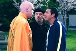 That Adam Sandler's first movie since Punch Drunk Love, Paul Thomas Anderson's brilliant love story, is the sort of comedy we've come to expect from him says a lot about how he feels about his fans. Unlike Jim Carrey, who now makes comedies every few years, Sandler seems to accept his limitations as an actor (not that he wasn't excellent in Punch Drunk Love, but that role was tailor-written for him) and understands that most viewers want to see him in a silly comedy. And while Anger Management is a bit more serious than films like Happy Gilmore or even Big Daddy, the movie still has its share of comedic bits. Anger Management casts Sandler as Dave Buznik, a sweet but meek executive secretary who's deathly afraid of confrontations. After a bizarre misunderstanding aboard an airplane, Dave is sentenced to 30 days of anger management therapy under the watchful eye of Dr. Buddy Rydell (Nicholson). Though Anger Management is tremendously entertaining - if about 10-15 minutes too long - the film is not as laugh-out-loud funny as some of Sandler's earlier works (even the much maligned Mr. Deeds had more moments of pure hilarity). The biggest difference between this and other Sandler comedies is the absence of screenwriter Tim Herlihy. Anger Management has instead been penned by newcomer David Dorfman, and while the film is peppered with sporadic instances of trademark Sandler humor (including the presence of perennial Sandler co-star, Allen Covert), the underlying inexplicable and oddball jokes have essentially been excised. Given that this is Sandler's first film since Punch Drunk Love, it seems pretty clear that the actor is attempting to utilize some of the skills he picked up in that movie. Dave is probably the most fully-fleshed out character he's played in a comedy, but that doesn't necessarily equal big laughs. The problem is - unlike Happy Gilmore or Billy Madison - Dave Buznik isn't overconfident in everything he does. The majority of the comedy from Sandler's earlier movies came through fish-out-of-water situations, where his boorish behavior clashed with snooty upperclass types. But that's just not the case here. The film doesn't even have the now-patented cheesy bad guy we've come to expect from Sandler's comedies. There's no Shooter McGavin here (Sandler's arch-rival in Happy Gilmore); Nicholson's Buddy Rydell is more of an annoyance to Dave than anything else. The enthusiasm of the eclectic cast certainly contributes heavily to the genial atmosphere. Sandler and Nicholson have great chemistry together, and Nicholson (in particular) goes for the gusto with his performance. Among the supporting cast, Turturro is a lot of fun in a minor role while John C. Reilly pops up as Dave's childhood nemesis - who's now a monk. Having said that, Anger Management is one of the most purely enjoyable movies to come down the pike in a good long while. Though the resolution of the film goes on longer than it needs to and is incredibly sappy (even by Sandler standards), the movie is sure to delight fans turned off by Little Nicky.