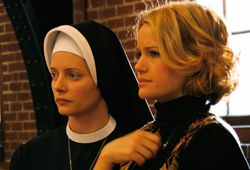 Based on a true story, The Mighty Macs follows Carla Gugino's Cathy Rush as she becomes the head coach for an all-girls Catholic college's basketball team - with the film detailing Cathy's ongoing efforts at both whipping her ragtag players into shape and dealing with a variety of other problems and obstacles (including the skepticism of her sexist husband). Though well made and well acted, The Mighty Macs is never quite able to become anything more than a sporadically passable yet mostly tedious drama - with the pervasively familiar storyline ranking high on the movie's list of deficiencies. Filmmaker Tim Chambers has infused the proceedings with a palpably routine feel that grows more and more problematic as time progresses, with one's ongoing efforts at embracing the characters and their exploits consistently stymied by the total lack of surprises within Chambers' screenplay. It's a shame, really, given that there's certainly plenty here worth admiring, with the most obvious examples of this Gugino's strong lead performance and the movie's atmosphere of authenticity. (It's worth noting, too, that the climactic basketball game is admittedly more suspenseful than one might've anticipated, even though its outcome is never even remotely in question.) The end result is a well-intentioned and consistently earnest endeavor that is, unfortunately, completely underwhelming almost from start to finish, with the movie's unabashedly inspirational bent ensuring that it might play well among families and sports fans.