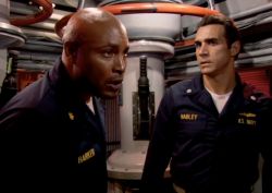 USS Poseidon: Phantom Below is a marginally entertaining but ultimately needless submarine movie that often feels like a loose remake of the far, far superior Crimson Tide. Adrian Paul stars as Frank Habley, a Naval Commander assigned the task of patrolling the treacherous waters off North Korea's coast. During a routine mission, Habley becomes convinced that his sub is being tracked by another, far more advanced vessel - leading him with no choice but to hide his boat using a dangerous maneuver that kills two crew members. A Court Martial follows, and Habley is given one more chance - with the condition that he take on a by-the-book first mate named Steven Barker (Mathew St. Patrick). USS Poseidon: Phantom Below features many of the expected cliches of the genre - there's even a moment in which a crew member yells, "dive, dive, dive!" - and generally comes off as an old-fashioned, by-the-numbers thriller set aboard a submarine. Screenwriter Mark Sanderson peppers the film with simplistic dialogue and melodramatic interludes, with a tearful death sequence ("so...cold...!") the most obvious example of the latter. That the movie's been shot on a miniscule budget couldn't possibly be more obvious, due mostly to some exceedingly shoddy special effects work (the computer imagery in Tron was more convincing). The performances are generally at the level of a made-for-TV production, though Paul and St. Patrick try their best to infuse some life into their one-dimensional characters. But really, this is just a watered-down (no pun intended) variation on Crimson Tide - complete with a tense moment in which Barker relieves Habley of his command - that has little chance of appealing to viewers with even a passing familiarity with the submarine genre.