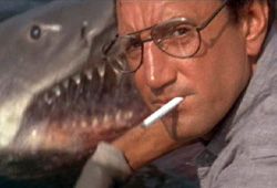 Directed by Steven Spielberg, Jaws details the chaos that ensues within a small island community after an enormous great white shark begins attacking its various inhabitants - with the film, for the most part, subsequently following Roy Scheider's police chief Martin Brody as he teams up with a marine biologist (Richard Dreyfuss' Hooper) and a grizzled fisherman (Robert Shaw's Quint) to kill the beast. There's ultimately little doubt that Jaws fares best in its opening half hour, as Spielberg, working from a script by Peter Benchley and Carl Gottlieb, does a superb job of establishing (and sustaining) an atmosphere of incredible tension - with the movie's justifiably legendary opening paving the way for an engrossing first act that's heightened by both Scheider's magnetic performance and the inclusion of several unbearably tense interludes. (In terms of the latter, it is, in the final analysis, difficult to do much better than the sequence wherein Scheider's Brody anxiously keeps an eye on a beach full of potential victims.) It's only as the movie progresses into its increasingly uneven midsection that one's interest begins to flag, as the narrative, which boasts more than a few lulls (eg Brody and Hooper drunkenly attempt to locate the shark themselves), suffers from a distressingly padded-out feel that's exacerbated by an ongoing emphasis on the three protagonists' uneventful (and distinctly repetitive) exploits at sea. (Quint's justifiably legendary story about his time on the USS Indianapolis is a rare highlight within this stretch.) And although the less-than-threatening nature of the title creature is, admittedly, not as problematic as one might've feared, Jaws is, when everything's said and done, unable to wholeheartedly live up to its place as a classic man-vs-beast thriller.