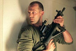 Though it suffers from an admittedly flabby midsection, The Transporter's gleefully over-the-top action set pieces and expectedly charismatic star turn from Jason Statham prove effective in sustaining one's interest on a fairly consistent basis. Statham stars as Frank Martin, a high-priced transporter of illicit objects who finds himself caught up in a human trafficking scheme after breaking a self-imposed rule to "never look in the package." Director Corey Yuen has infused The Transporter with an unapologetically broad, downright tongue-in-cheek sensibility that ensures the movie is at its best during its action-oriented sequences, as the quieter moments within Luc Besson and Robert Mark Kamen's screenplay can't help but come off as dull and colorless by comparison. It subsequently goes without saying that the admittedly electrifying opening half hour gives way to a lamentably uneventful second act, in which Frank - having reluctantly agreed to assist Lai (Shu Qi) in her quest - investigates central villain Wall Street's (Matt Schulze) felonious activities and generally participates in a series of character-building endeavors. As compelling as Statham is here, there's little doubt that one's patience does start to grow thin during this stretch - yet it's just as clear that the movie bounces back with a vengeance for a thrilling final half hour that's relentless in its emphasis on violence and mayhem. The end result is an effort that ultimately fares a whole lot better than the majority of its similarly-themed brethren, with Yuen's colorful sense of style certainly an improvement over the hopelessly morose modi operandi of filmmakers like Len Wiseman, John Moore, and Xavier Gens.